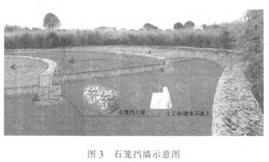 为了充分发挥"海绵体"的特性,园区路面及停车 场釆用高分子纳米合金材料和四维蜂巢约束系统(见图2),该系统具有使用寿命长、施工周期短、维护成本低、便于雨水下渗、可减少水土流失等优点。同时在进 行园区建设时还将石料填入柔性钢丝笼中达到一定 的孔隙率,逐层砌筑成柔性挡土构筑物,从而形成石 笼挡墙(见图3),保证水土自然交换,防止水土流失, 保证园区排水安全。