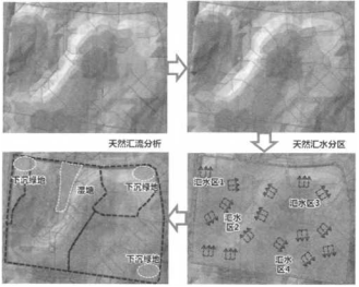 结合创新园的天然产汇流分析、天然汇水分区以及创新园的用地布局(见图8),将园区划分为4个主要的排水分区,并以此作为创新园海绵化建设的设计分区,落实建设任务。